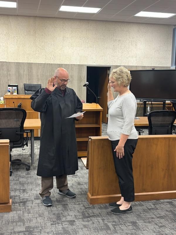 Magistrate Judge Scott Anson Tuesday morning administered the oath of office to Kim Bontrager.