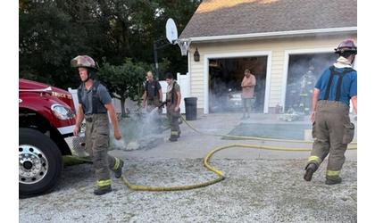 When firefighters arrived, they found a fire had started in an attached garage and burned up the wall.