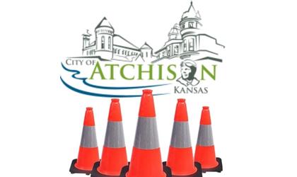 (KAIR)--Like dandelions after a spring rain, orange traffic cones have sprouted along Atchison's U.S. Highway 59, west of 10th Street, as seasonal roadwork begins.