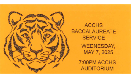 The ACCHS Baccalaureate Service will be held the evening of Wednesday, May 7, at 7:00, at the ACCHS auditorium.