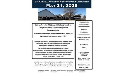 (KAIR)--Planning is underway for the 2nd annual Atchison County Fair Fundraiser, but, a release says "this year is a little different" due to what the release calls the loss of all general funding, due to 2025 Atchison County Commission budget cuts. Those funds, the release explains, were used for utilities, entertainment during the fair, insurance, maintenance, and any needed upkeep or renovations.