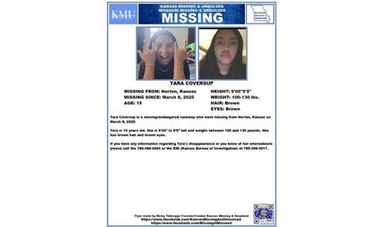 Anyone with information regarding her disappearance or whereabouts is urged to contact the Horton Police Department at 785-486-2694 or the Kansas Bureau of Investigation at 785-296-4017.