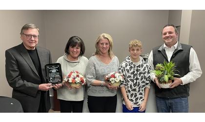 During the meeting, EDGE Executive Director Lucas Froeschl presented the Investor of the Year award to Hullman's Ford / Lincoln of Falls City, honoring them for their contributions over the years to the community including renovations to the former Firestone building and adding services and jobs.