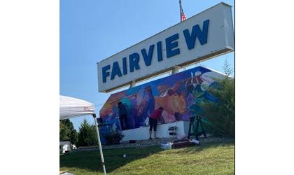 Christina's mural design features wildlife and plants native to northeastern Kansas, as well as local Fairview landmarks and farming images. It's located at the west entrance to Fairview.