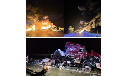 (KMZA)--Two semis collided early Thursday morning, 5 miles north of Sabetha on U.S. Highway 75, in Nemaha County, leaving responding fire fighters to be met with what the Sabetha Fire Department calls "heavy fire, debris, complete blockage of the roadway, and ruptured fuel tanks."