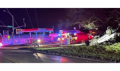 The vehicle landed on its top. Wilson said the three occupants were able to get out of the vehicle before officers arrived.