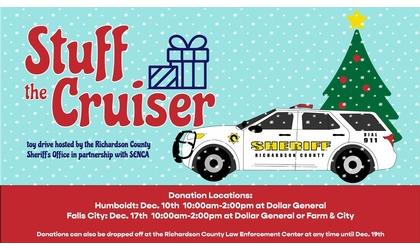 The Stuff the Cruiser events are planned for Saturday, December 2 at the Dollar General in Humboldt from 10 a.m - 2 p.m. and on Saturday, December 9 from 10 a.m. - 2 p.m. at Dollar General in Falls City and at Farm and City Supply in Falls City.