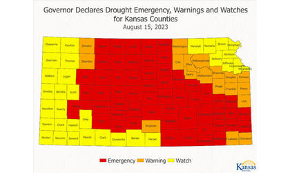 (MSC News)--Updated Kansas drought declarations are approved, through Executive Order, by Governor Laura Kelly, with that move placing the bulk of the local area under a drought watch, with those local counties joining a total of 32 placed under that status.