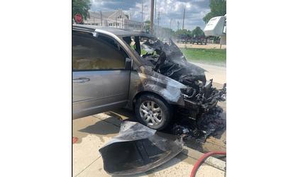 Upon arrival, he said crews found the Dodge minivan located on the east side of 1st Street with its engine compartment fully engulfed in flames.