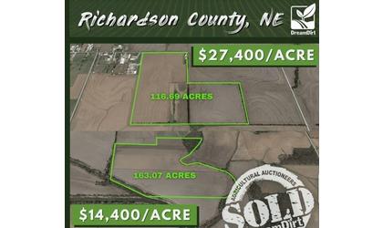 (KLZA)-- A 116 acre farm located east of Falls City along Highway 159 sold in an online auction recently for what is believed to be the highest price per acre ever sold in Nebraska.