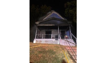 (KAIR)--An early Tuesday morning Atchison house fire sent fire crews rushing to 819 Kansas Avenue, the location of the two story home which was engulfed in flames when they arrived.