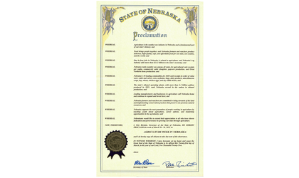 “Nebraska agriculture powers our state’s growth and helps to feed the world,” said Gov. Ricketts. “Each March, we set aside a week to thank our ag producers for their dedication to grow Nebraska. Our strength as a state is rooted in the work ethic, resourcefulness, and generosity of our farm and ranch families.”
