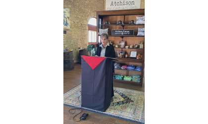 Kelly came to Atchison Tuesday, along with Kansas Main Street Director Scott Sewell, and spoke at the Santa Fe Depot during a ceremony held to announce Atchison’s inclusion.