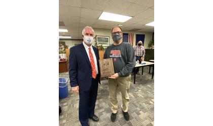 (KLZA)-- Jack Moles, Executive Director of the Nebraska Rural Community Schools Association presented two awards during Monday nights Falls City School Board meeting.