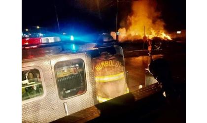 The house was totally engulfed in flames with power lines down and arcing and the gas meter burned off and emitting natural gas that ignited according to a Humboldt Fire Department release on Facebook.