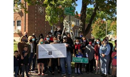 Members of numerous local organizations looked on and cheered as the Unity Street sign was hammered into place. Among those in attendance were city of Atchison officials, representatives from nearby Benedictine College, members of the civic group Atchison United, and teachers and schoolchildren.