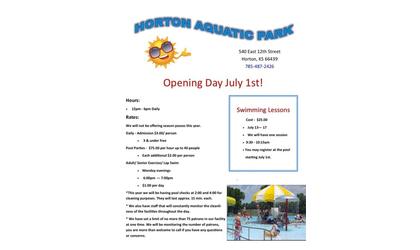 (KNZA)--Horton’s Aquatic Park will open for the summer season, following a reversal of the original decision to keep it closed for the season.