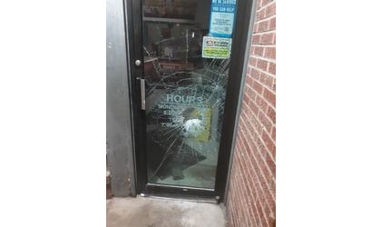 It appears a brick was thrown through the front door to gain access. The report says it appears cigarettes and liquor were targeted in the burglary.