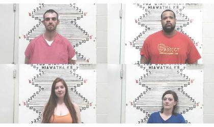 Zachariah Brown, of Hiawatha; Samantha Liming, of St. Joseph; Cherish Gomer, of Highland; and Avery Steward, of Hiawatha, were arrested on charges related to the possession of illegal drugs and possession of drug paraphernalia.