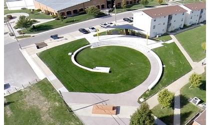 The Plaza, located on the west side of the Highland campus across from the Walters Wellness Center, was built in memory of long time Highland resident Myrtle Peuker.