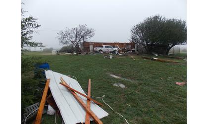 (KNZA)--A pet was killed, a home damaged, and an outbuilding destroyed, following a strong storm, with tornadic rotation, Monday afternoon in Brown County.