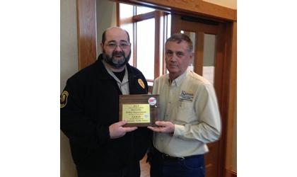 Bob Hamilton, law enforcement liaison for the Kansas Department of Transportation, presented a 2017 Community Traffic Safety Award to Police Chief John Defore during Monday’s Hiawatha City Commission meeting. The Department received a Gold Award—the second highest award presented.