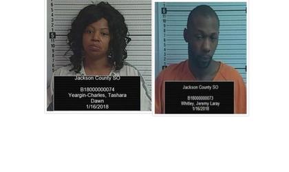 Jackson County Sheriff Tim Morse, in a news release, says 39-year-old Tashara Yeargin-Charles and 31-year-old Jeremy Laray Whitley were both arrested on charges of possession of methamphetamine, possession of marijuana, possession of drug paraphernalia, and transporting an open container.