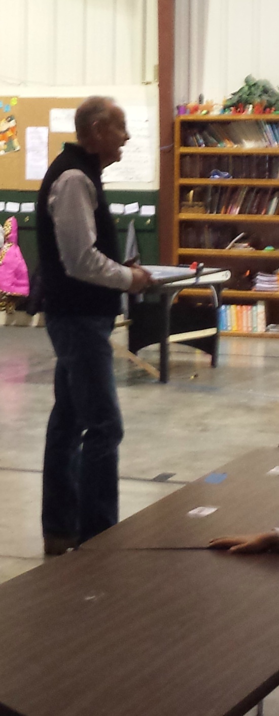U.S. Senator Jerry Moran (left) talks to Atchison Boys and Girls Club Unit Director Joel Hardy (right) about cards the Senator was given by the club members.