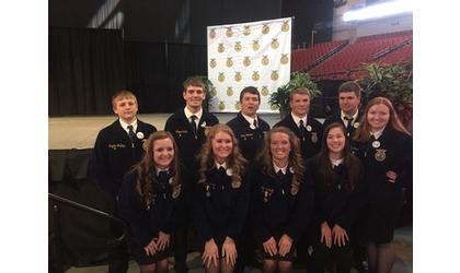Falls City FFA attended State with many competing members. Eight members competed in State Competitions and two new officers also attended. The Senior Parliamentary Procedure Team competed Wednesday, then attended the first convention session. Speakers during this session were Dean Steve and Kevin Laue. They informed the members about life and agriculture.