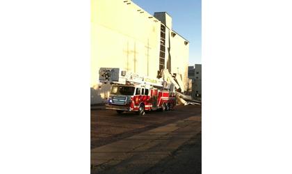 Although flames were not visible on the outside of the structure, fire crews, complete with aerial ladder truck, continued to work the scene as afternoon turned to evening.