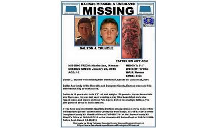 16-year-old Dalton Trundle went missing from Manhattan, Kansas on January 26th.