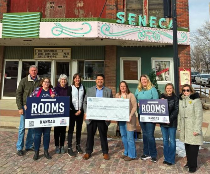 “This is a big win for downtown Seneca,” said Kylee Bergstrom, Executive Director of the Seneca Area Chamber and Downtown Impact. “The Theater is one of our most recognizable buildings, and bringing housing back to the upper floor strengthens both the building and our Main Street. We are grateful to Kansas Main Street and the Department of Commerce for investing in rural communities like ours.”