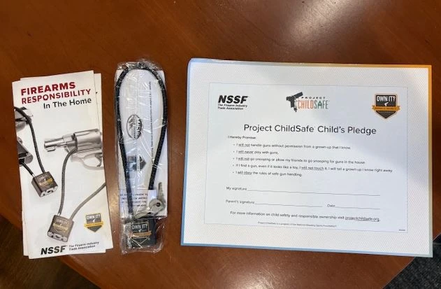 Sheriff John Merchant invites residents to stop by the sheriff's office lobby to pick up the gun locks and pamphlets with basic safety tips, including ways to educate children and help prevent accidents.