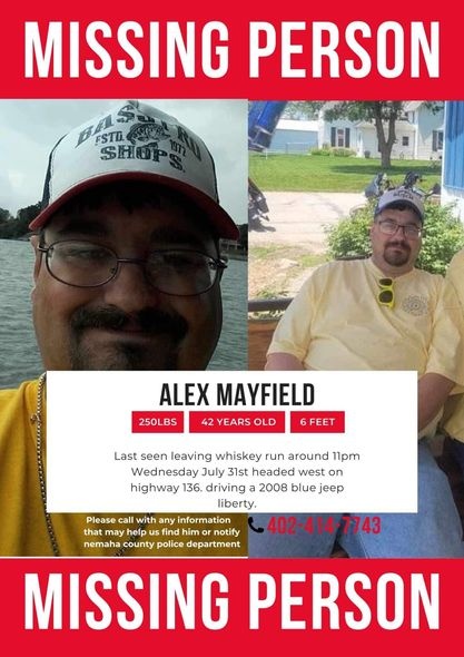 (KLZA)-- The Nemaha County, Nebraska Sheriff's Depatment is seeking the public's help in locating 43-year-old Alexander Mayfield.