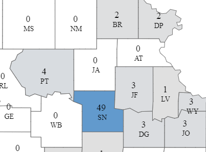According to the Kansas Department of Health and Environment, two cases each are confirmed in Doniphan and Brown counties, while three are confirmed in Jefferson County, one in Leavenworth County, and four in Pottawatomie County.