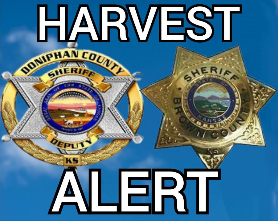 That word is delivered in a release from Doniphan County Undersheriff Brendan Wolvington which says the Sheriff's Office, as the "County's agricultural community begins the busy fall harvest season," is reminding "everyone to take precautions against vehicle burglaries and thefts, explaining that "with farmers spending long hours in the fields, vehicles left unattended become easy targets for criminals."