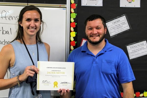 Hiawatha Elementary School is pleased to announce this year's Horizon Award Nominee. Mrs. Jackie Meyer (4th Grade )will represent USD 415 for this year’s Horizon Award. The mission of the award is to recognize exemplary first-year teachers who perform in a way that distinguishes them as outstanding.