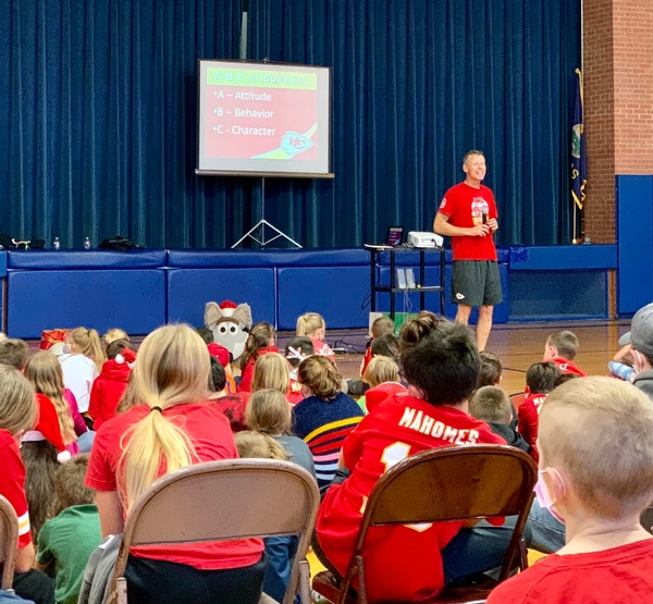 KC Wolf visited Doniphan West Elementary and discussed the A-B-Cs of Success: He stressed the importance of your attitude, behavior, and character. Thank you, PTO, for this opportunity. The students really enjoyed the assembly.