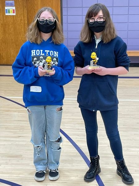 HMS’s Maggie Turner (right) won the 2022 Jackson County Spelling Bee this morning at Royal Valley Middle School. HMS’s Maggi Emert was runner up. Congratulations!