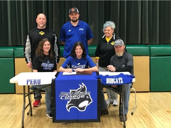 Congratulations Kylee Dieckmann for signing with Peru State to play softball. Front row. Kim, Kylee, Zach Back row. Chris Robinson (Gold Glove Midwest Coach), Ricky Broxson ( Peru State Assistant Coach, Susie Robinson (Giold Glove Midwest Coach)