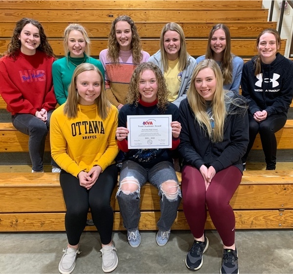 Each year, the Kansas Volleyball Association (KVA) recognizes high school varsity volleyball teams who have an average GPA of 3.3 or higher. Our team average was 3.94!!