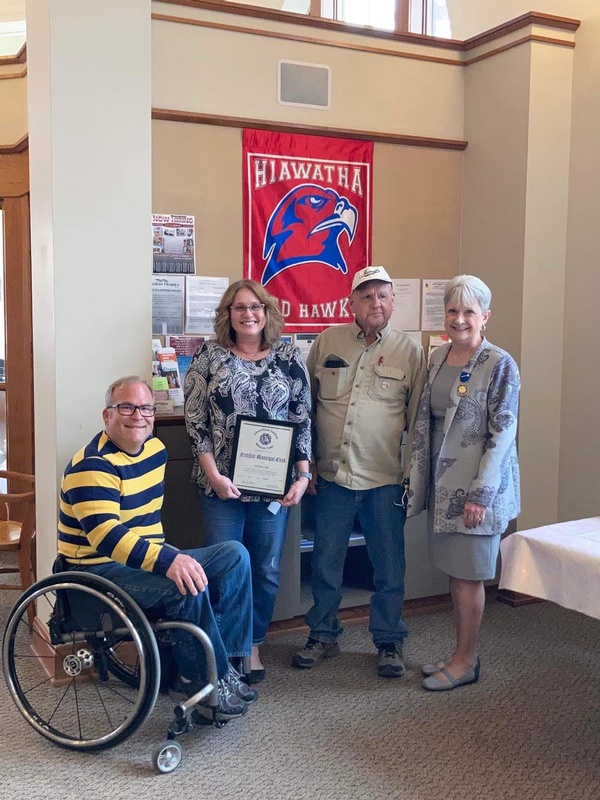 At a reception held Friday, March 4th, City Clerk Tish Sims was presented her Certified Municipal Clerk (CMC) certificate. The designation of Certified Municipal Clerk is awarded by the International Institute of Municipal Clerks (IIMC), Inc. IIMC grants the CMC designation only to those municipal clerks who complete demanding education requirements; and who have a record of significant contributions to their local government, their community and state. This award is presented to clerks who have accomplished their hours in education, experience and knowledge of their municipal training. The City of Hiawatha Governing Body and staff are proud of Tish’s accomplishments, and are saddened to see her leave. Beginning March 7th, Tish Sims is the City Clerk for Lansing, Kansas.