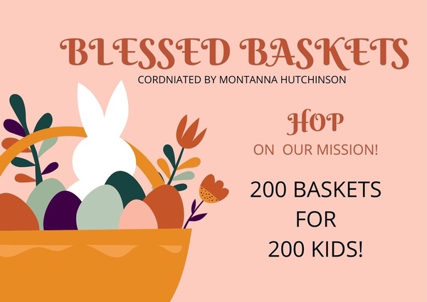 "Blessed Baskets" are Easter Baskets that are given to young children in families in need. Example items in the baskets are toothbrushes/toothpaste, wind-up toys, and sidewalk chalk.