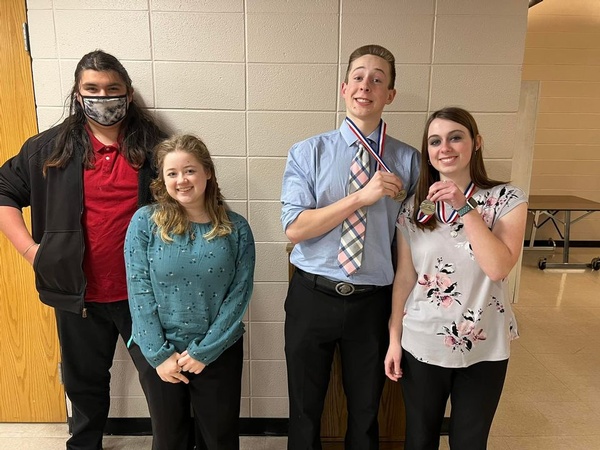 A small but mighty squad of the Hiawatha Red Hawk Forensics team competed at Wamego today!