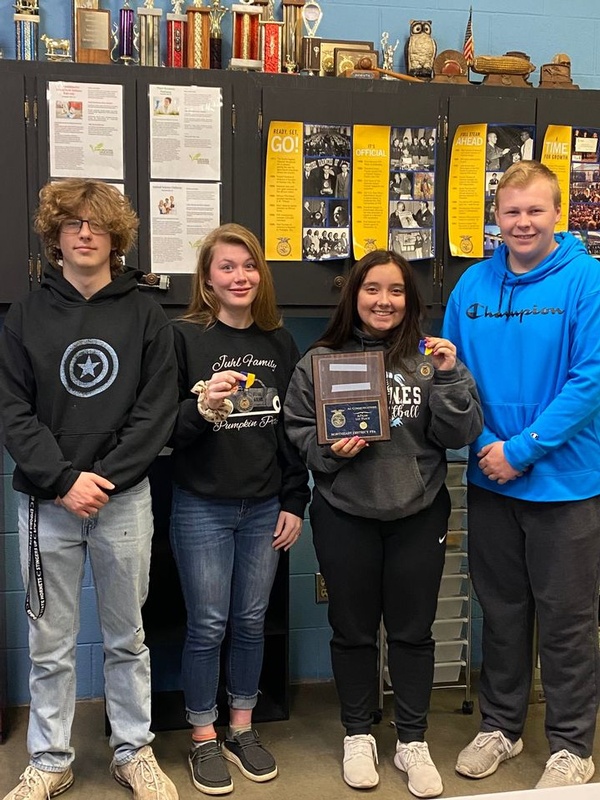 Caidence Brune, Abbie and Chloe Wattenbarger, and Kaycin Juhl made up our Floriculture team and placed 6th overall. This team will also be competing at the state level on May 1st.