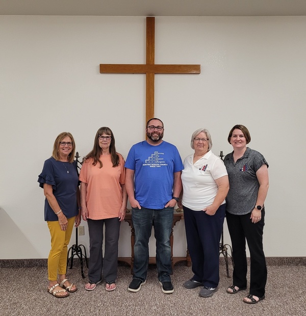 ( Pictured Left to Right: Sheri Burdiek, Church Treasurer; Sandy Vernon, Church President; Dustin Walters, STEP Board Member; Marceil Hasenkamp, STEP Board President; and Tory Jost, STEP Executive Director )
