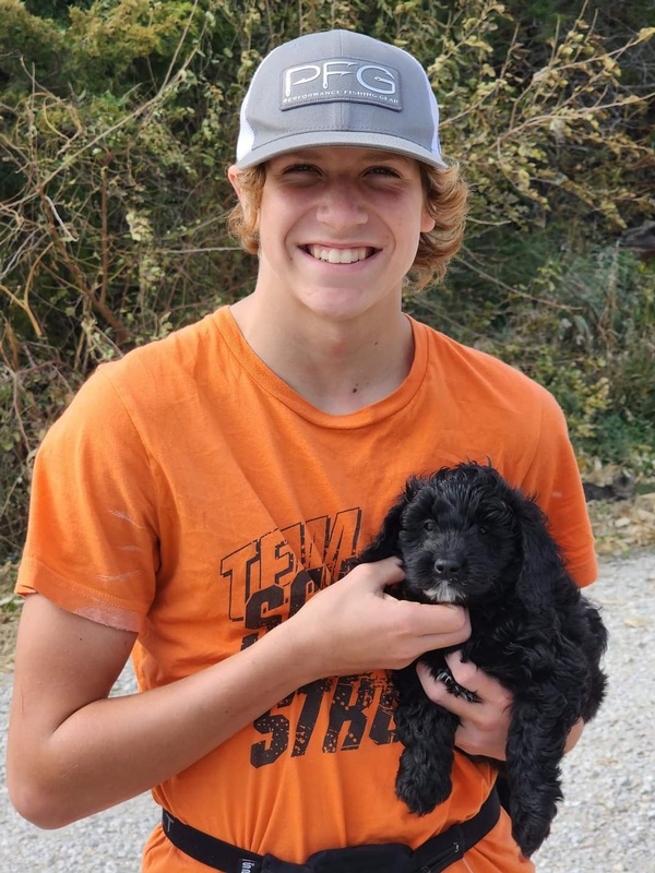 The photo is Mason holding the mini, golden doodle puppy that was auctioned off on Monday, October 31st.