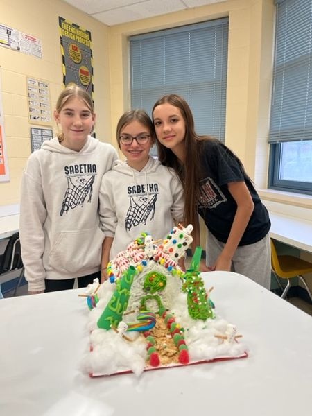 Sabetha Middle School Science teacher Mrs. Burger's Gingerbread Houses are complete! The students were given a set of criteri that they had to meet in building thier delicious creations for a fun end of the year project.