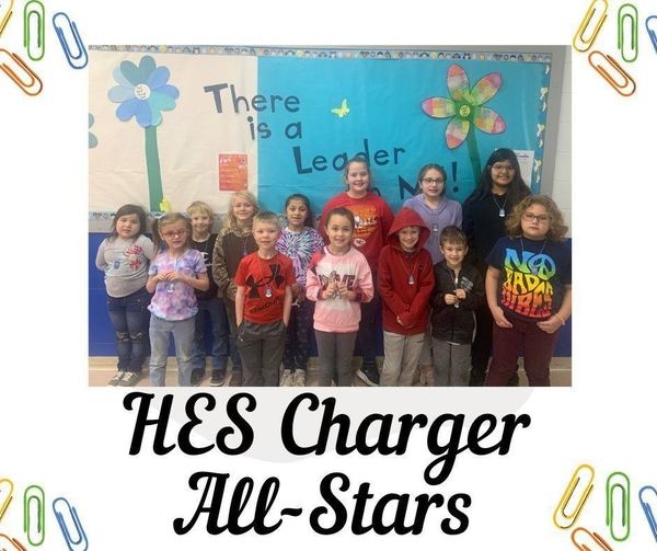 Congratulations to the HES Charger All-Stars this week! 2-13-23 Posted February 14, 2023 09:00am Congratulations to the HES Charger All-Stars this week! Students will be discussing how to listen with their hearts this week. All reactions: 17You, Kristi Sextro, Jennifer Welch and 14 others Read All