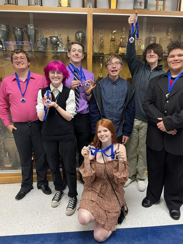 Eli Hoschouer placed 2nd in Humorous Solo Acting (HSA) qualifying him for State Champs & State Festival. Eli also placed 6th in Original Oratory (OO)